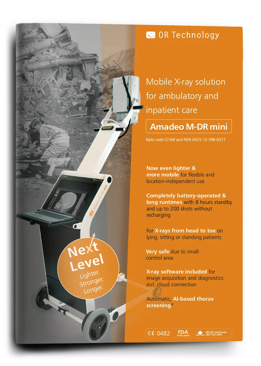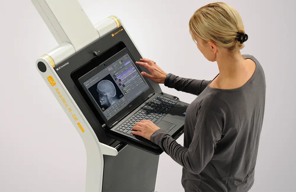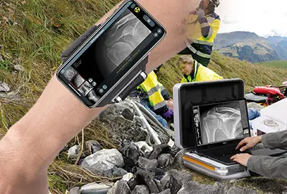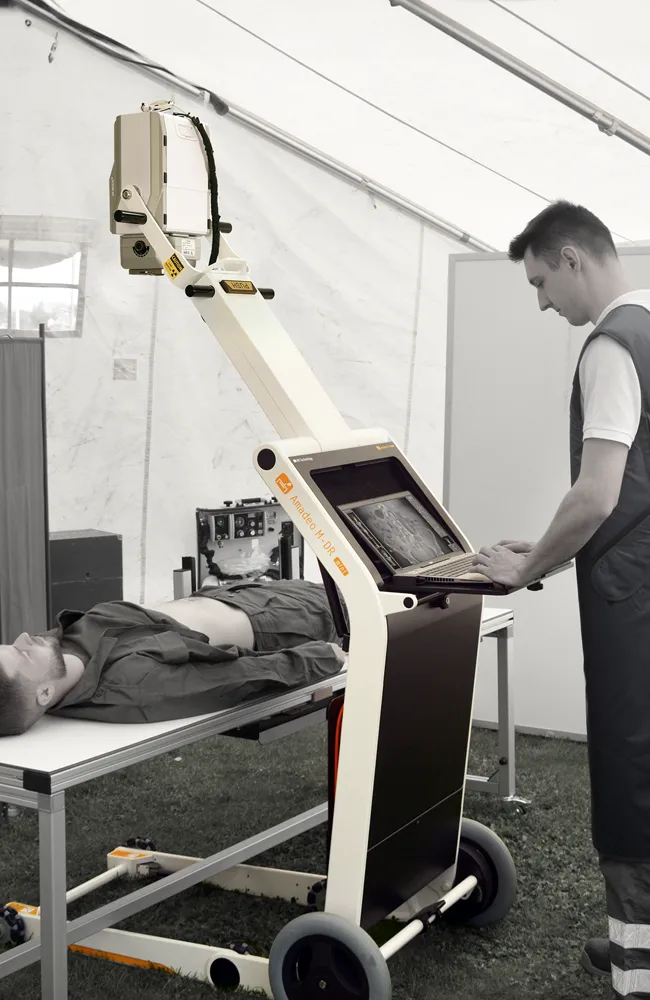 The Amadeo M-DR mini is a wireless, battery-powered complete X-ray system – ideal for mobile use, emergency situations, intensive care units, disaster areas, research vessels and oil rigs. Weighing only a few kilograms, it is one of the world’s lightest X-ray systems in its class and offers full diagnostic performance with maximum mobility.