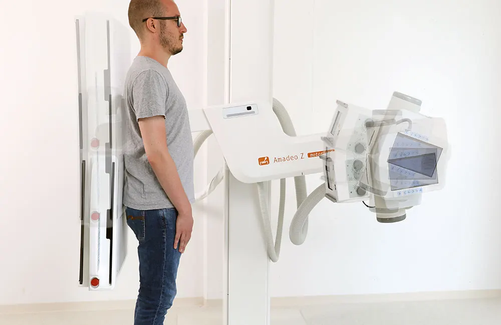 Designed especially for small rooms (from 2.40 m ceiling height), suitable for standing, sitting and lying examinations (table optional)