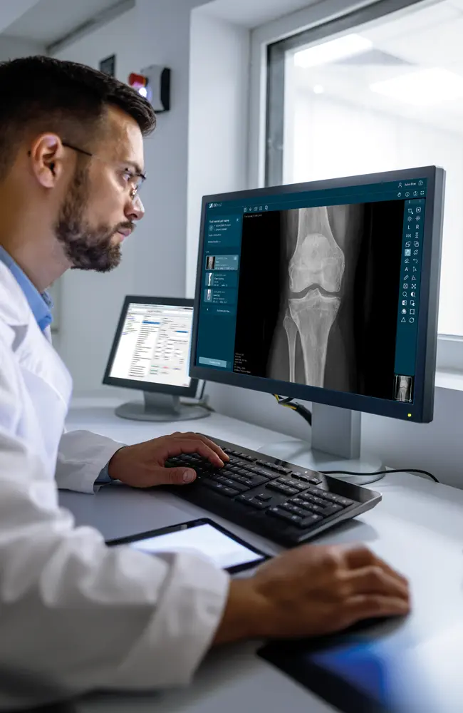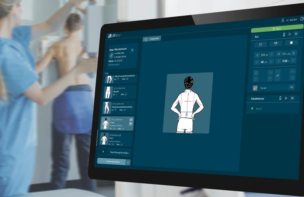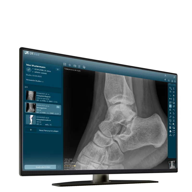 ORmed™ delivers professional X-ray images in outstanding quality. The software controls your X-ray system, optimises images organ-specifically, and enables efficient workflows. With intuitive operation, a multimedia X-ray assistant, and easy integration into management systems, ORmed™ ensures maximum precision – suitable for small clinics and large hospitals.