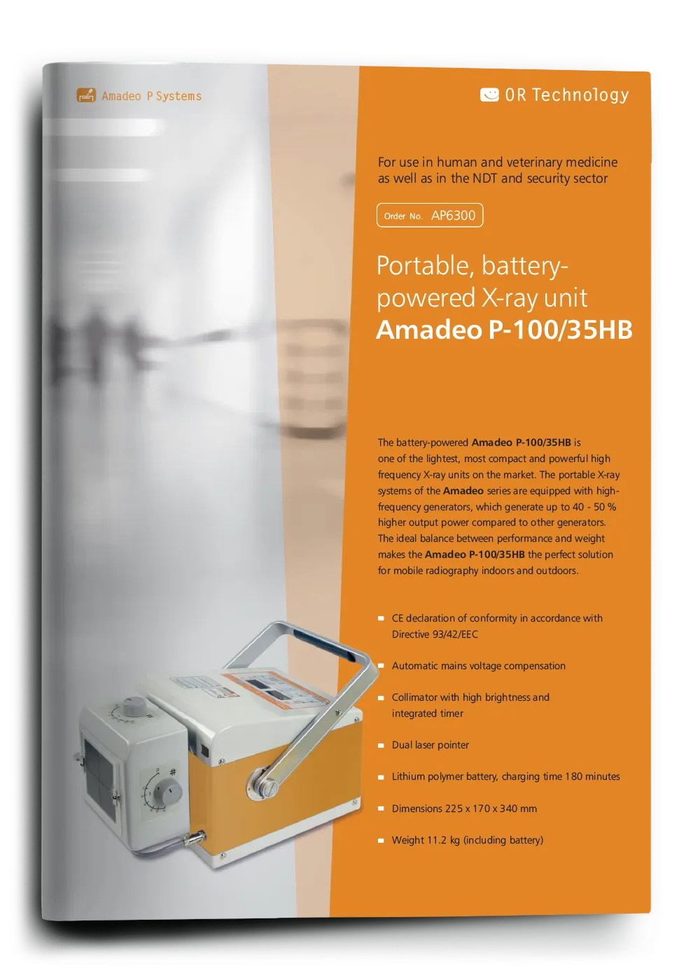 • Compact, portable 5 kW X-ray generator with integrated battery; up to 125 kV