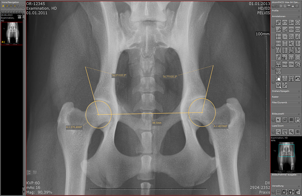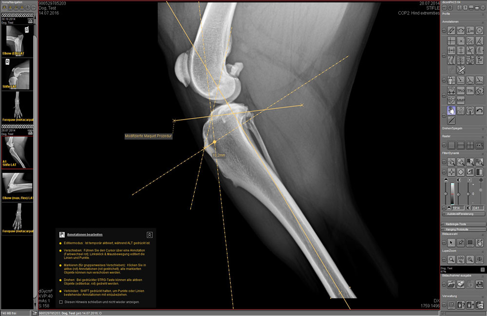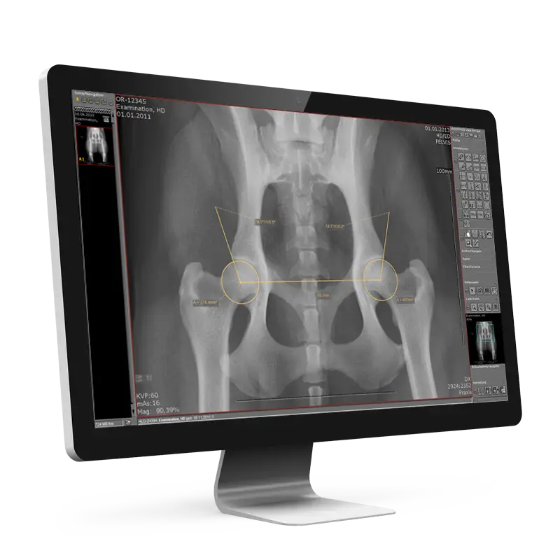 Special features and filters for veterinary medicine: Integrated tools for TPLO, TTA, heart measurement, or HD analysis facilitate precise diagnoses and support high-quality reporting.