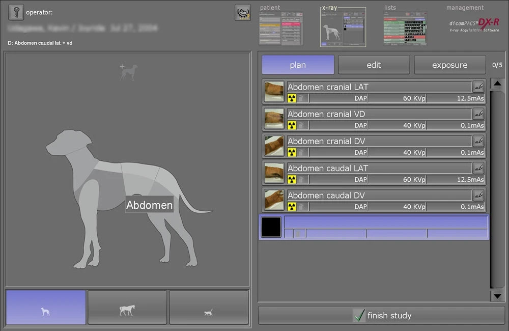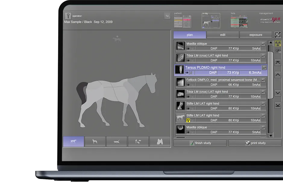 dicomPACS®DX-R is the heart of our OR 4Vet systems – featuring smart operation, AI support, dynamic X-ray, and wireless control – perfectly tailored to modern veterinary medicine. A fast and reliable acquisition and diagnostic software that optimally supports you in everyday practice.